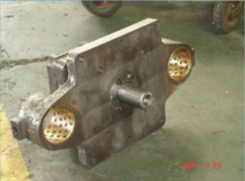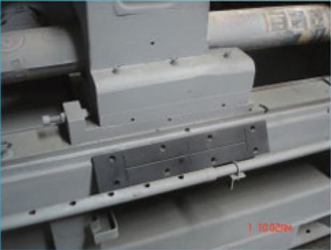 Adjustable moving platen carrier shoes Easily adjusted with one hex screw .The USA fiber material platen is used between cast shoe & heat treated wear guide belt. It does not need any lubricant .It can get longer service life than bronze. |